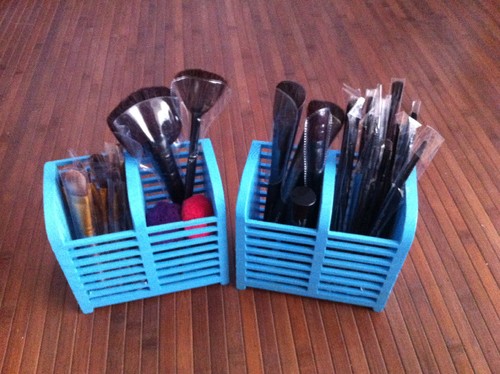 " Et voilá"!!! Dois porta talheres que se transformaram em úteis porta pincéis, de make.